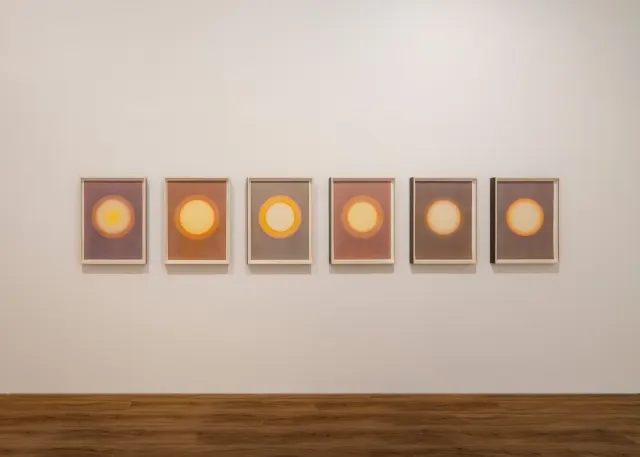 Installation view of The glacier melt series 1999/2019, 2019, Multiverses and futures, 2017, and Subsaharan dusk study no. 1–6, 2018 by Olafur Eliasson in Olafur Eliasson: Your curious journey, Museum MACAN, Jakarta, 2025. Photo: Liandro Siringoringo. Courtesy of Museum MACAN.